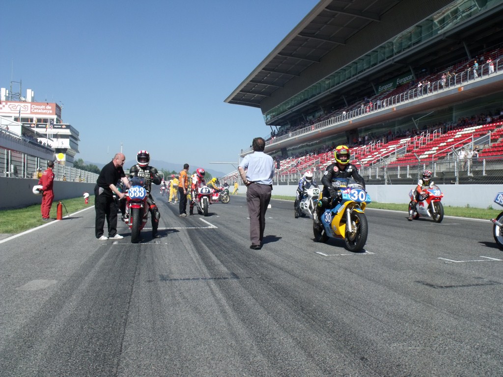 Lorganisation est impeccable et on nous rappelle que lon est sur le tracé du circuit de MotoGP, pas de chicanes, pas de modification, ils roulent sur les traces de Rossi !!